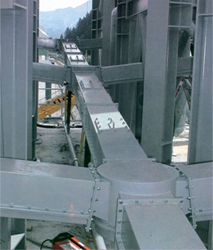 斜槽主要構(gòu)件是透氣層,本系列設(shè)計(jì)中采用的柔性厚型板式合成纖維織物,是一種新型透氣層,它具有耐高溫(可達(dá)150℃)耐腐蝕,耐磨損,吸濕性低,重量輕,表面平整,使用壽命長(zhǎng)等優(yōu)點(diǎn)。透氣層無(wú)需現(xiàn)場(chǎng)安裝,每節(jié)槽體由制造廠組裝后,現(xiàn)場(chǎng)對(duì)接起來(lái)即可,這樣既減少了安裝工作量,又保證了質(zhì)量。