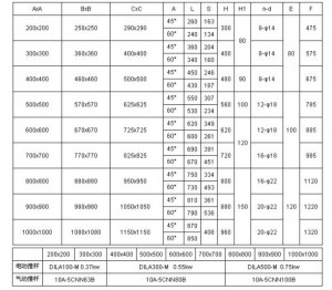 扇形閘門主要外形連接尺寸表